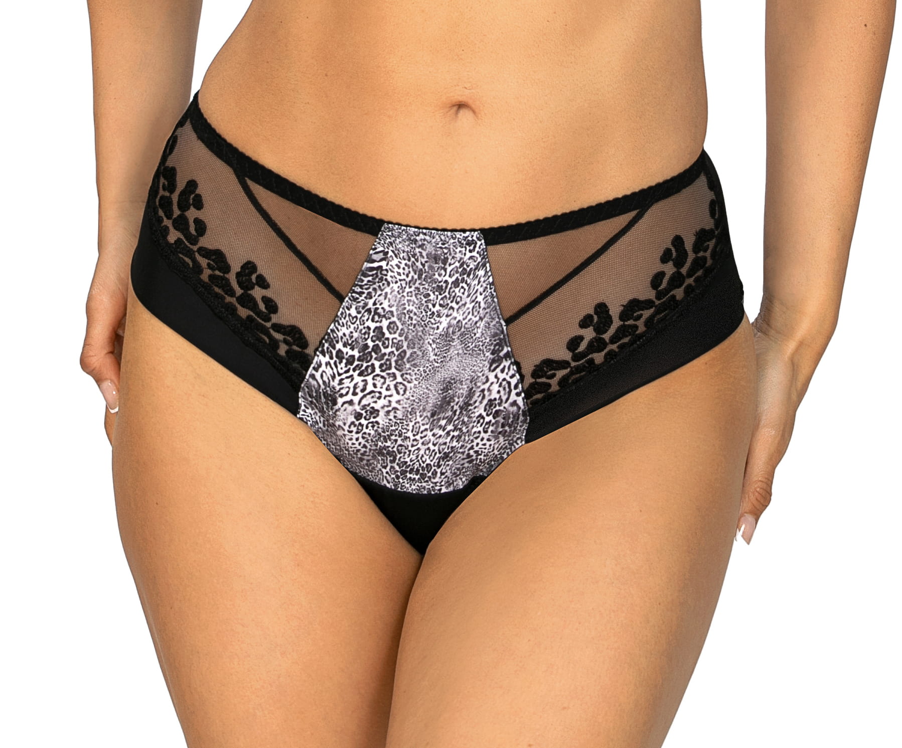 Kolor panterki w odcieniu popielatym świetnie komponuje się z czernią, tworząc wyrafinowany zestaw.